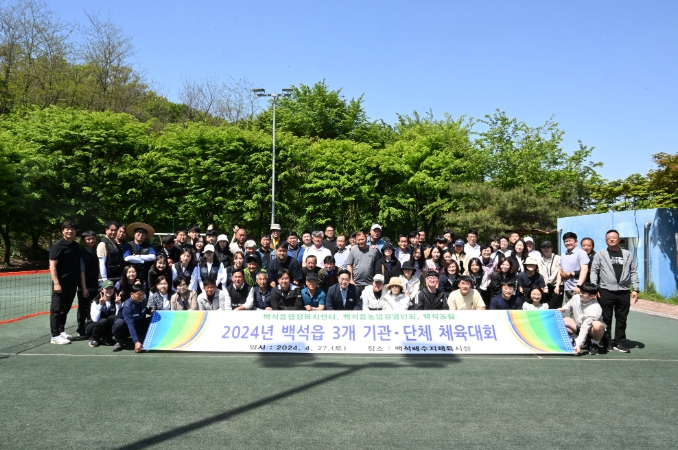 3개기관 체육대회는 백석읍행정복지센터, 백석농협, 백석농업경영인회 등 3개 기관·단체가 참여하는 행사로 지역사회의 화합과 건강 증진을 위해 20여년 전부터 못자리를 끝내고 모내기 전 매년 4월에 진행해 온 역사가 깊은 뜻깊은 행사이다.