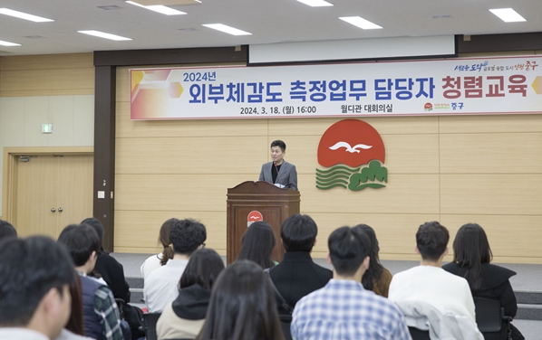 [뉴스서울] 인천시 중구는 지난 18일 월디관 대회의실에서 계약 업무 및 관리, 인·허가, 보조금 지원, 재·세정 분야 담당 공무원 94명이 참여한 가운데 ‘외부체감도 측정업무 담당자 청렴 교육’을 실시했다고 밝혔다.
