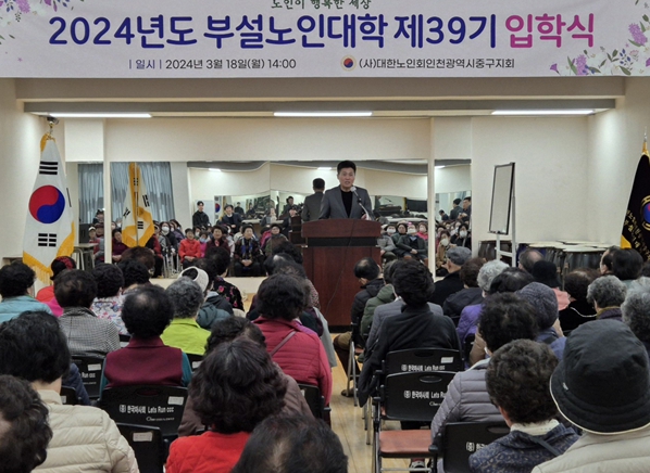 [뉴스서울] 인천시 중구는 지난 18일 중구노인복지관에서 (사)대한노인회 인천 중구지회 부설 노인대학 제39기 입학식을 개최했다.