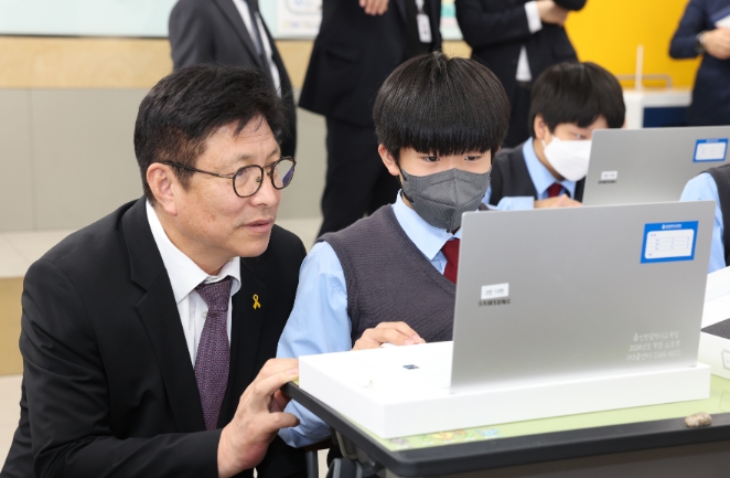 도성훈 교육감은 이날 학생들에게 노트북을 직접 전달하고, 디지털 교육 정책에 대한 의견을 청취했다.