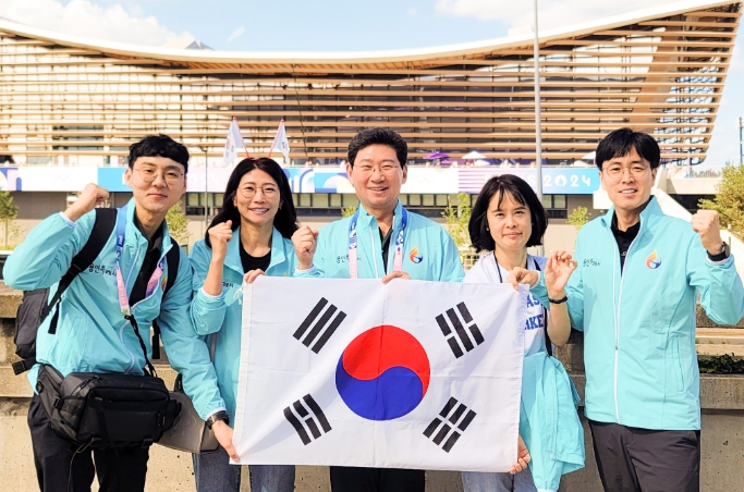 [뉴스서울] 용인특례시 소속으로 파리 올림픽에 출전한 높이뛰기 우상혁 선수 등 한국 선수단을 응원하기 위해 프랑스 파리를 방문 중인 이상일 용인특례시장은 8일 오전(현지 시각) 파리 올림픽 아쿠아틱 센터를 찾아 다이빙 여자 3m 스프링보드 준결승 경기에 나선 김수지 선수를 응원했다.