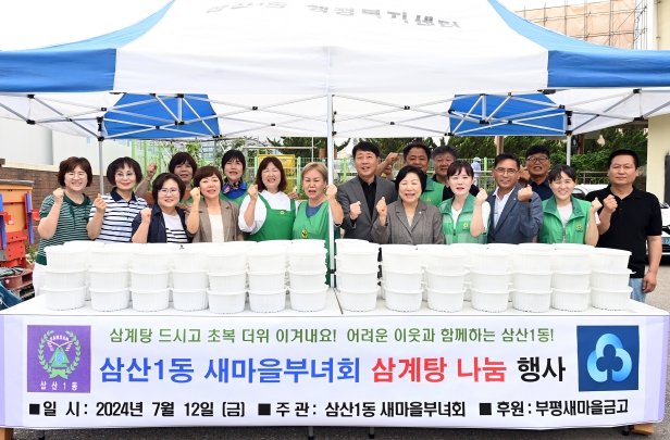 [뉴스서울] 부평구 삼산1동 새마을부녀회는 지난 12일 초복을 맞이해 저소득 어르신 100가구에 삼계탕 나눔 행사를 진행했다.