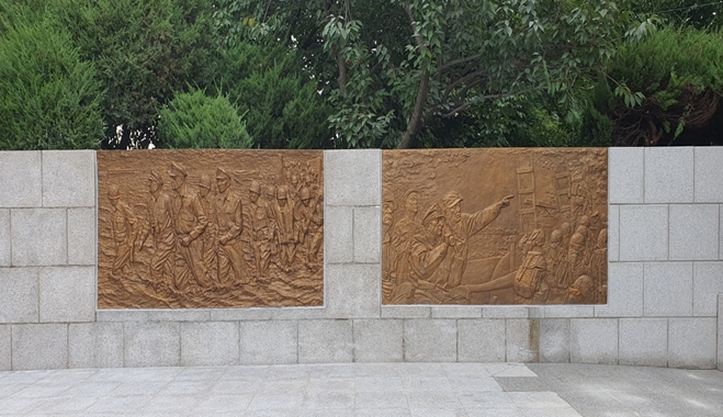 ▲ 맥아더 동상 부조물 전경 |