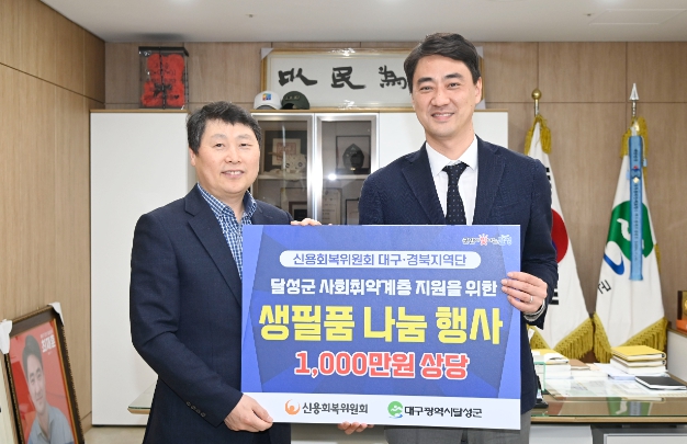 [뉴스서울] 달성군은 신용회복위원회 대구지부(단장 이시형)에서 지역 내 저소득 취약계층을 지원하기 위해 약 200가구를 대상으로 생필품(1000만 원 상당) 전달 기탁식을 진행했다고 밝혔다.