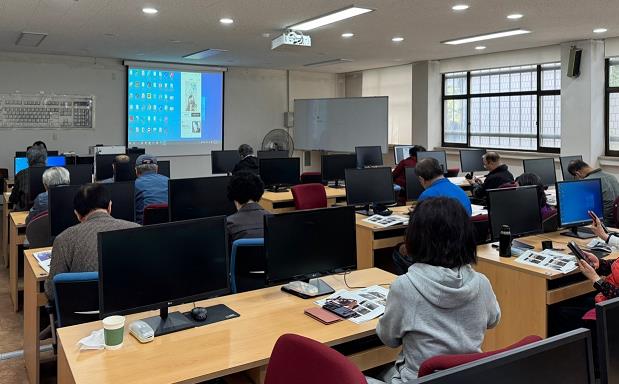 교육은 △초급과정 △활용과정 △특강 등으로 진행된다. 초급과정은 스마트폰, 파워포인트, 엑셀, 컴퓨터 초보, 활용과정은 ᄒᆞᆫ글 문서 작성부터 동영상 편집, 인터넷 활용, 무인 결제기(키오스크) 등을 교육한다.