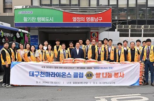 [뉴스서울] 대구 남구는 지난 7월 3일, 천마라이온스클럽이 백미10kg, 200포를 기탁했다고 밝혔다.