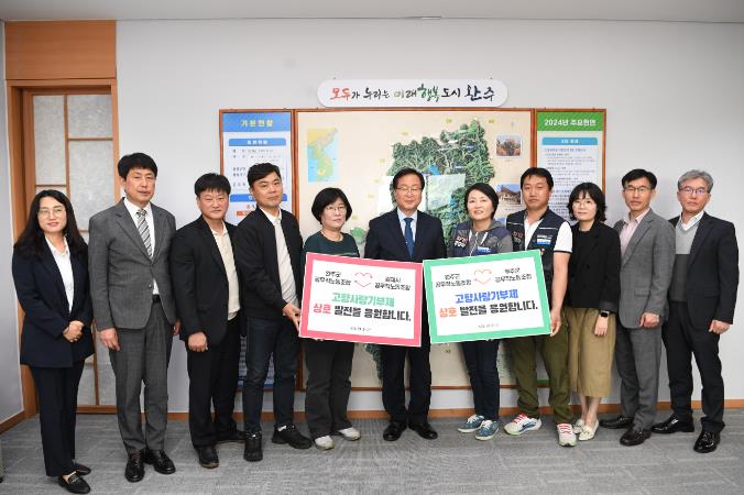 안용주 김제시 위원장은 “이번 상호기부가 지역 발전의 마중물 역할이 되길 바란다”며 “고향사랑기부제 홍보에도 적극 동참하겠다”고 밝혔다.