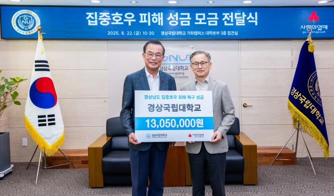[뉴스서울] 경상국립대학교는 7월 16~20일 집중호우에 따른 수해 지역 및 이재민을 돕기 위한 성금 1305만 원을 경남사회복지공동모금회에 전달했다.
