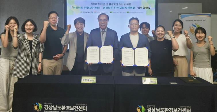 ▲ 경상남도 환경보건센터는 8월 21일 경상국립대학교 의과대학에서 ‘경상남도 환경보건센터–경상남도 탄소중립지원센터’ 간 협력 업무협약식(MOU)을 개최했다. |