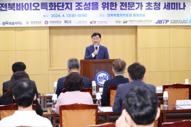 [뉴스서울] 전북특별자치도가 바이오 특화단지 공모 선정을 위해 산·학·연·병·관 협업체계를 공고히 해나가고 있는 가운데 12일 생명 자원을 활용한 글로벌 생명산업 육성 및 바이오산업 역량 강화를 위한 세미나를 개최했다.