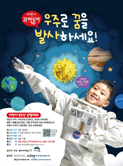신청한 어린이는 기자단원으로 등록돼 오는 5월부터 9월까지 한국지질자원연구원·한국항공우주연구원·한국천문연구원·㈜보령 등 우주산업 관련 연구기관과 기업이 제공하는 다양한 현장 교육과 온오프라인 미션을 수행하게 된다.