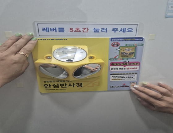 ▲ 'safe lady 안(심)여(성)단길 프로젝트' 대전서부경찰서, 공원 내 공중화장실 몰카 방지 삼면안심반사경 설치 |