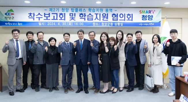 [뉴스서울] 청양군은 지난달 30일 군청 상황실에서 김돈곤 군수를 비롯한 학습지원 협의회 위원(군수, 교육전문가, 학부모대표) 등 25명이 참석한 가운데 제2기 청양 탑클래스 학습지원 사업 착수보고회 및 학습지원 협의회를 개최했다.