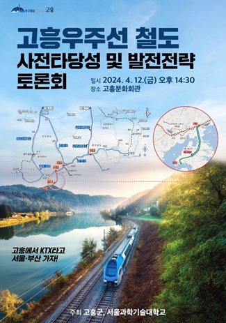 이번 토론회는 철도건설의 필요성과 당위성 및 의지를 대내외에 공표하기 위해 마련됐으며, 고흥군과 서울과학기술대학에서 공동 주최한다.