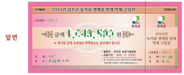 한편 강진군은 병행충 방제 구입비를 포함해 벼 상토 공급 지원사업, 유기질 비료 공급사업, 토양개량제 공급사업 등 총 약 35억원의 예산을 투입해 농가 경영비 부담 완화를 위해 최선의 노력을 다하고 있다.