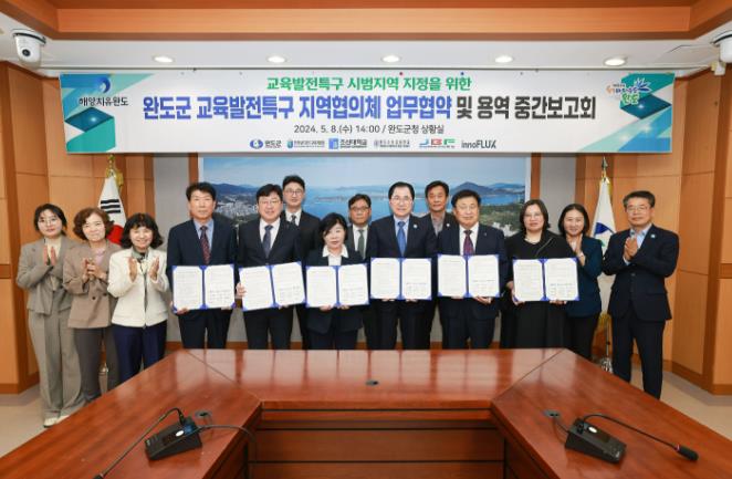 [뉴스서울] 완도군은 지난 8일 군청 상황실에서 교육발전특구 시범지역 지정을 위한 지역 협의체와 업무 협약 및 용역 중간 보고회를 개최했다.