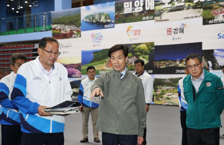 안병구 시장과 간부 공무원 20여 명은 개회식이 열리는 밀양종합운동장부터 배드민턴경기장, 스포츠센터 등 주요 경기장을 둘러보며 안전·교통 등 관련 사항 전반에 대해 꼼꼼히 살펴봤다.