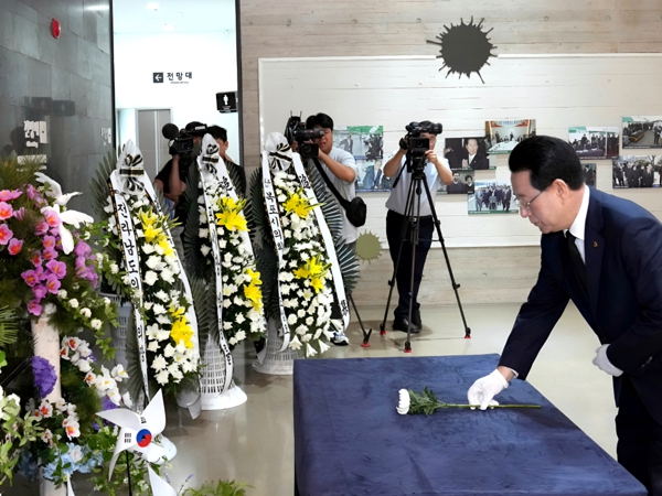 추모식은 김영록 전남도지사와 전남도의회 이광일 부의장과 도의원, 김대중 전남도교육감, 도민 등 150여 명이 참석한 가운데 경건한 분위기 속에서 헌화, 추모사, 추모공연 순으로 진행됐다.