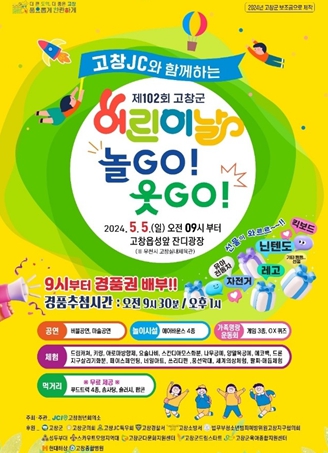 5일에는 고창청년회의소가 주관하는 ’고창군 어린이날 놀GO! 웃GO!'가 고창읍성 잔디광장에서 펼쳐질 예정이다.