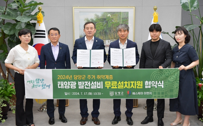 [뉴스서울] 담양군은 ㈜에스제이이엔지(대표 조승준)와 16일 주거 취약계층에 태양광 발전설비 무료 설치를 지원하는 업무협약을 체결했다.