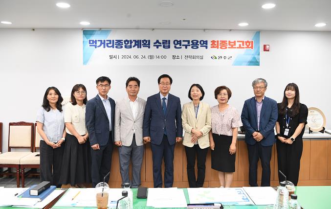 지난 24일 완주군은 군청 전략회의실에서 유희태 군수를 비롯한 군 관계자 등 10여 명이 참석한 가운데 먹거리 종합계획 연구용역 최종보고회를 열었다.