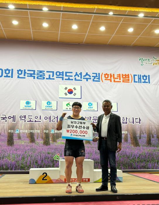 양정재 선수는 작년 8월에 개최된 9회 대회에서 합계 251kg, 종합 2위를 차지했었으며 이번 대회에서는 고등부 남자 89kg급에 출전해 인상 122kg, 용상 160kg, 합계 282kg을 들어 올리며 금메달 3개로 3관왕의 영광을 안았다.