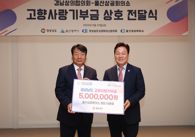 이날 행사에는 박완수 경남도지사, 김두겸 울산시장, 최재호 경남상공회의소협의회 회장, 이윤철 울산상공회의소 회장이 참석한 가운데, 최재호 경남상의협의회 회장은 울산시에, 이윤철 울산 회장은 경남도에 고향사랑기부금 500만 원을 각각 전달했다.