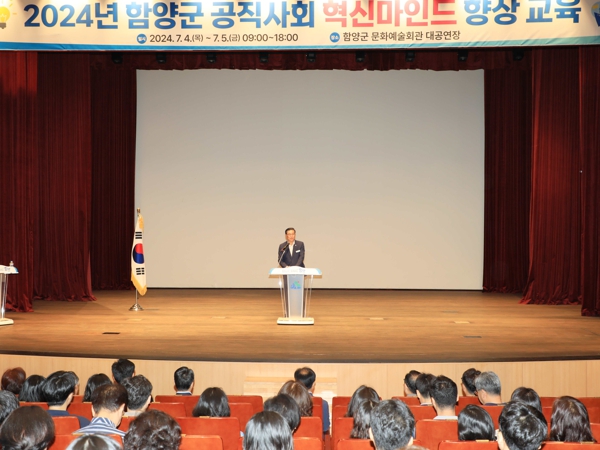 [뉴스서울] 함양군은 7월 4일과 5일 이틀에 걸쳐 문화예술회관 대공연장에서 공직자의 업무혁신과 조직문화 개선 등을 위한 ‘2024년 함양군 공직자 혁신마인드 교육’을 진행한다.