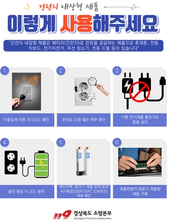 [뉴스서울] 울진소방서는 건전지 내장형 제품으로 인한 화재를 예방하기 위해 안전수칙을 안내한다고 밝혔다.