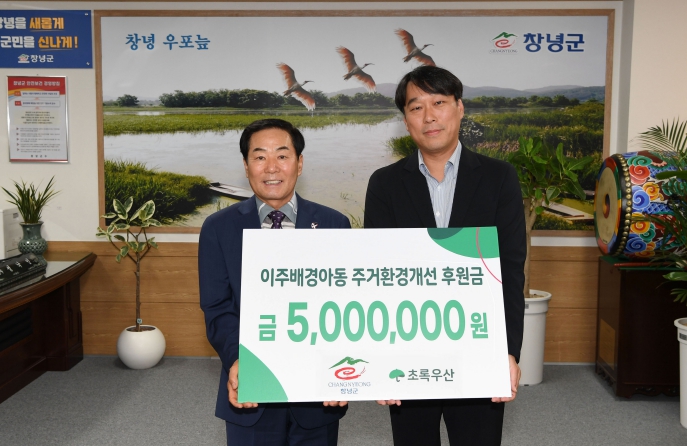 이날 기탁식에는 성낙인 창녕군수와 조유진 초록우산 경남지역본부장 등 관계자들이 참석했으며, 기탁한 후원금은 주거환경개선이 필요한 다문화가정에 수세식 화장실을 설치하는 비용으로 사용된다.