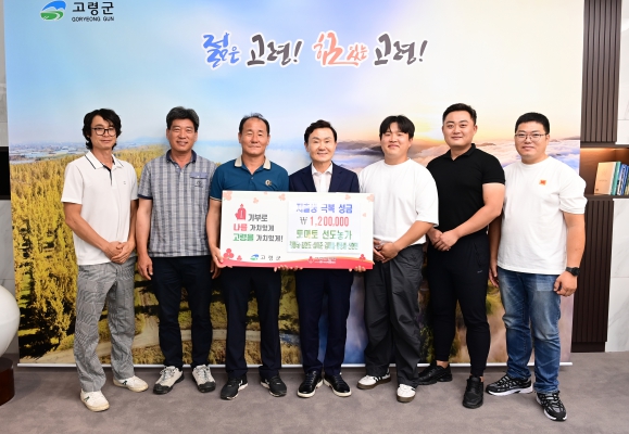 [뉴스서울] 성산면·다산면·우곡면에서 토마토 재배를 하고 있는 선도농가(김종태, 김현도, 심이준, 김대철, 황종철, 신현민)에서 7월 12일 고령군청을 방문하여 저출생 극복을 위한 성금 120만원을 기탁했다.