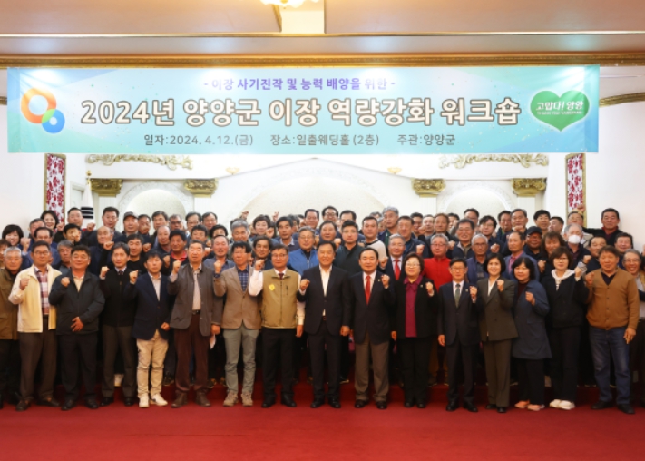 [뉴스서울] ‘2024년 양양군 이장역량강화 워크숍’이 4월 12일 10시 일출웨딩홀 연회장 2층에서 읍·면 이장 120여명이 참석한 가운데 열렸다.