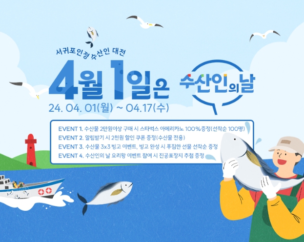 [뉴스서울] 서귀포시가 운영하는 공식 온라인 쇼핑몰'서귀포in정'이 2024년 4월 1일 수산인의 날을 맞이하여 수산물 특별 기획전을 진행한다.