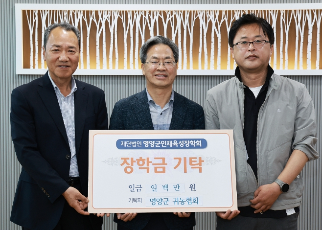 [뉴스서울] 영양군 귀농협회(협회장 최봉석)는 5월 2일 (재)영양군인재육성장학회를 찾아 장학금 100만 원을 전달했다.