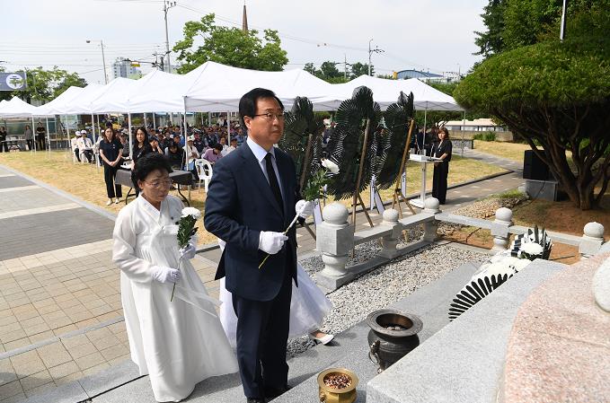 유희태 군수는 추념사를 통해 “오늘의 자랑스러운 대한민국을 이룩할 수 있었던 것은 순국선열과 국가유공자들의 희생이 있었기에 가능했음을 잊어서는 안된다”며 “완주군은 앞으로도 보훈가족의 예우와 복지증진을 위하여 더욱 노력할 것이다”고 말했다.