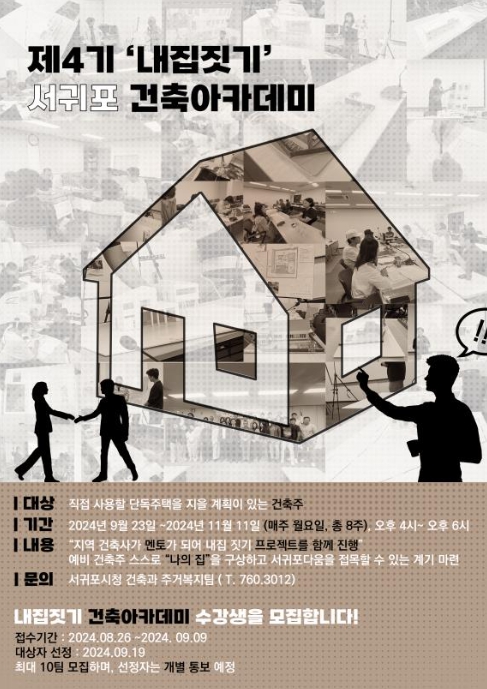 [뉴스서울] 서귀포시는 예비건축주를 대상으로 ‘내 집 짓기’ 건축아카데미를 진행할 예정이며, 8월 26일부터 9월 9일까지 참가자를 모집한다.