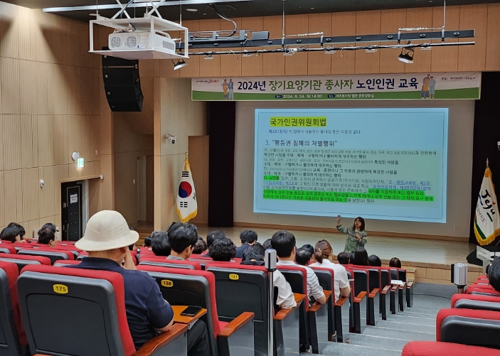 [뉴스서울] 서귀포시는 6월 24일 노인인권 보호 주간을 맞아 서귀포시청 1청사 별관 2층 문화강좌실에서 관내 장기요양기관 종사자를 대상으로 노인인권 교육을 실시했다.