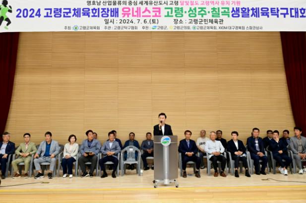 조용흠 체육회장은 대회사를 통해 “고령 · 성주 · 칠곡 생활체육탁구대회를 고령군에서 개최할 수 있어 매우 영광”이라고 전하며 “앞으로도 다양한 생활체육 대회를 통해 지역사회가 하나 되는 기회를 마련하겠다”라고 밝혔다.