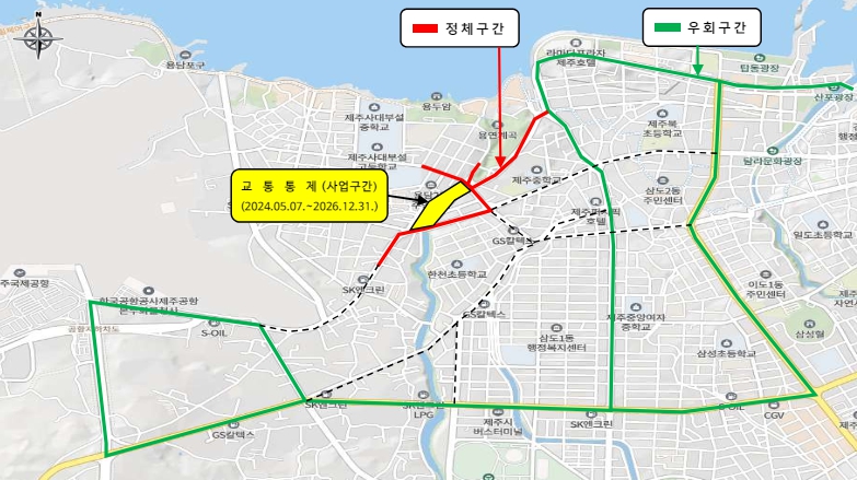 제주시는 도로 통제로 인한 시민 불편 사항을 최소화하기 위해 우회도로 안내 등 다각적인 홍보를 펼쳐 도로 정체에 대비한다.
