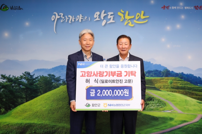 [뉴스서울] 함안군은 2일 허식 전 농협중앙회 회장직무대행이 함안군 고향사랑기부제에 동참했다고 밝혔다.