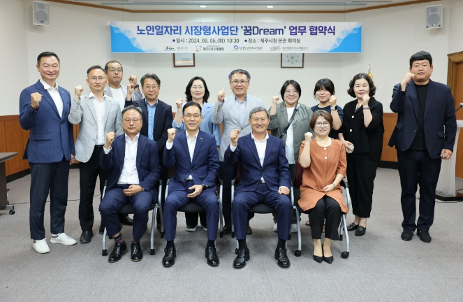 [뉴스서울] 제주시는 8월 6일 시청 본관 회의실에서 제주시 노인일자리 시장형사업단 '꿈Dream'의 효율적이고 원활한 사업 추진을 위해 제주시니어클럽, 제주특별자치도개발공사, 한국노인인력개발원과 업무협약을 체결했다.