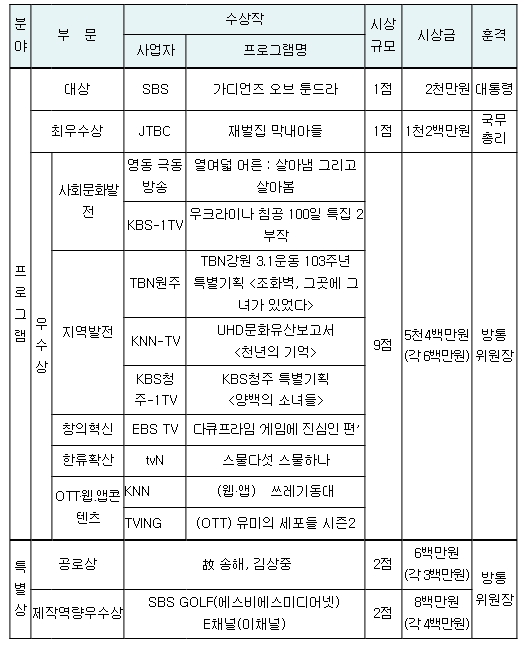 ▲ 2023 방송통신위원회 방송대상 프로그램분야 수상작 |