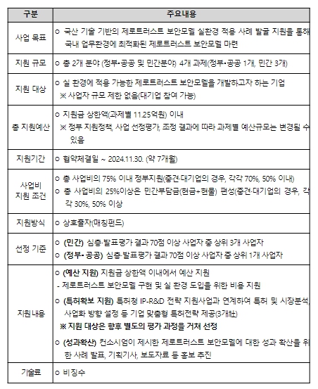오는 4월 16일에는 제로트러스트 사업 설명회를 개최하며, ‘제로트러스트 도입・확산 지원사업’ 및 ‘제로트러스트 도입·전환 컨설팅’ 사업의 참여를 희망하는 정부・공공 및 기업 관계자를 대상으로 세부 계획을 설명할 계획이다.