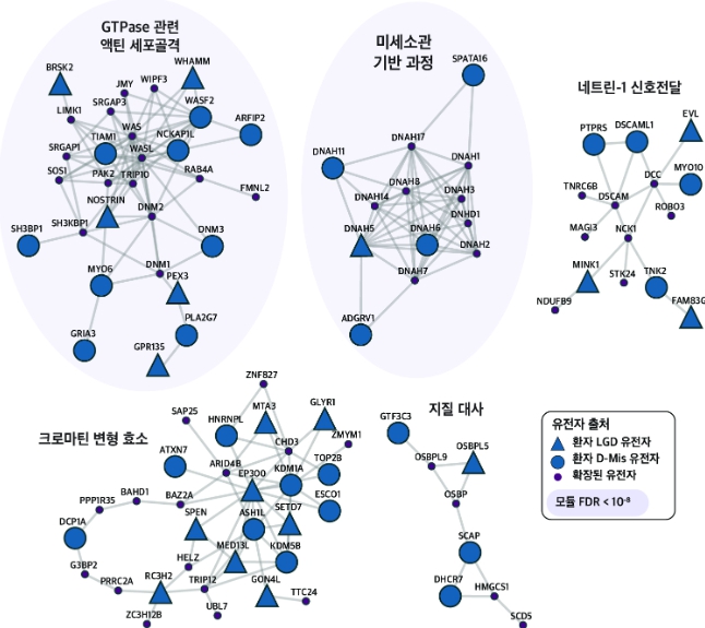 ▲ 척수수막류 관련 유전자 및 생물학적 기능 네트워크 |