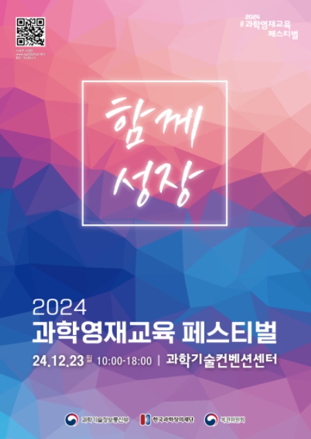 [뉴스서울] 과학기술정보통신부와 한국과학창의재단은 12월 23일, 한국과학기술회관(서울 강남구)에서 ‘함께 성장하는 과학영재교육’을 주제로'2024년 과학영재교육 페스티벌'을 개최한다.