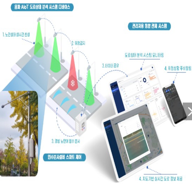 이에 따라 블랙아이스 등 겨울철 도로 결빙으로 인한 사고 예방은 물론 도로침수 경고, 포트홀 감지 등 차량 미끄럼 사고를 유발할 수 있는 도로 위험 요소를 사전에 감시하고 대응하는 공공의 안전과 직결된 혁신제품이다.