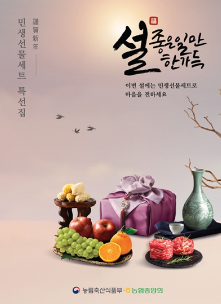 [뉴스서울] 농림축산식품부는 1월 23일 오전 11시부터 농협과 함께 정부세종청사 5동 1층 앞에서 ‘설 민생선물세트 홍보 및 농축산물 소비촉진 행사’를 개최한다.