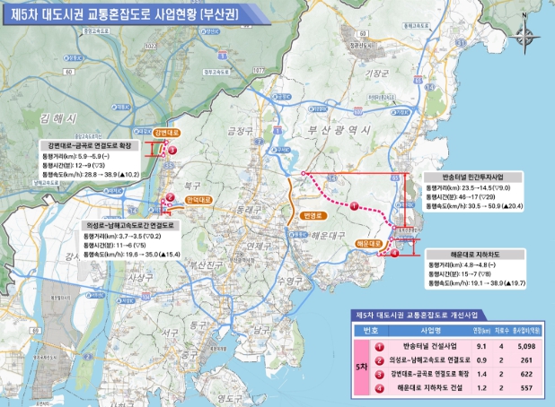 | ▲ 제5차 대도시권 교통혼잡도로 사업현황(부산권) |