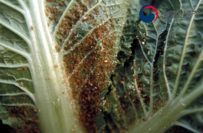 ▲ 복숭아혹진딧물 피해를 본 배추 |