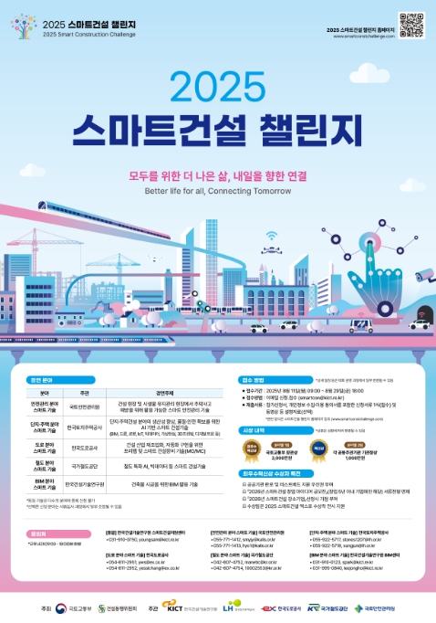 또한, 이번 챌린지에서 입상한 기술은 11월 5일부터 11월 7일까지 일산 킨텍스에서 열리는 ‘2025 스마트건설 EXPO’에 전시되어 관심 있는 산업 관계자 및 일반 국민에게 소개될 예정이다.